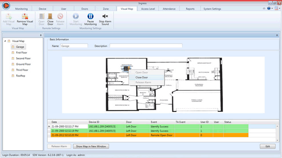 And Ingress software allows security officer to open doors remotely from the UI itself: