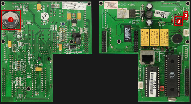 If Battery works well, replace the Timer Crystal (2) at priority, follow by Timer Chip (3).