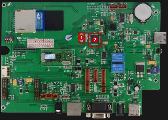 For Freeze issue, replace the 11.0592 Crystal (1) at priority, follow by IC Chip (2),