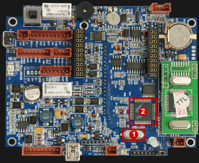 Changing step: For Freeze issue, replace the 11.0592 Crystal (1) at priority, follow by IC Chip (2), **The IC Chip must be purchased from FingerTec. Provide the model number of the fingerprint reader to FingerTec upon placing order.