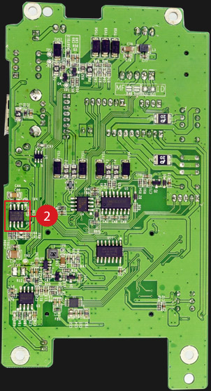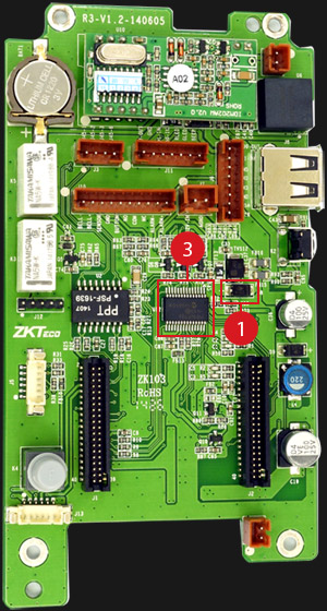 Apply the multi-meter’s testing pin on both ends of the regulator. Make sure the power supply to MCU Board is connected. Check the result at the multi-meter and it should show 12V and above. Replace the regulator if the result shows lower than 12V. If the regulator works well, replace the power IC (2) by priority, followed by IC Chip (3). |