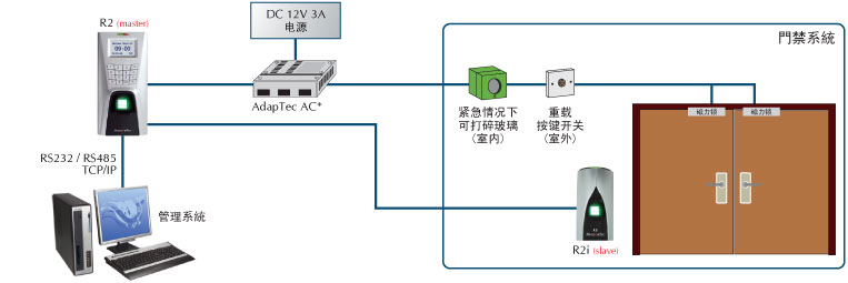 FingerTec R2 和R2i是最新研制成功的指纹门禁考勤系统。FingerTec R2具有8M 闪存,作为主读卡器,保存用户在读卡器中的所有信息和考勤记录。 FingerTecR2i则是副读卡器,用来读取指纹。利用强大的FingerTec软件TCMS V2 便可获取主读卡器中的数据;与 FingerTec R2 和 R2i 配合使用,可通过生物特征密匙控制出入情况。